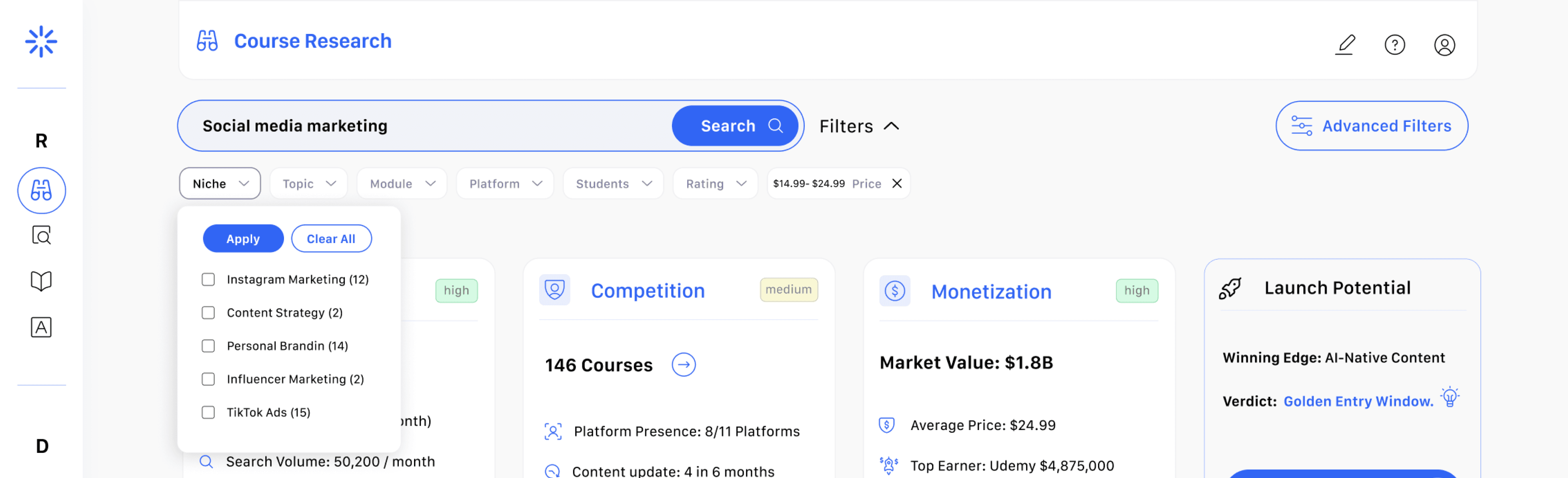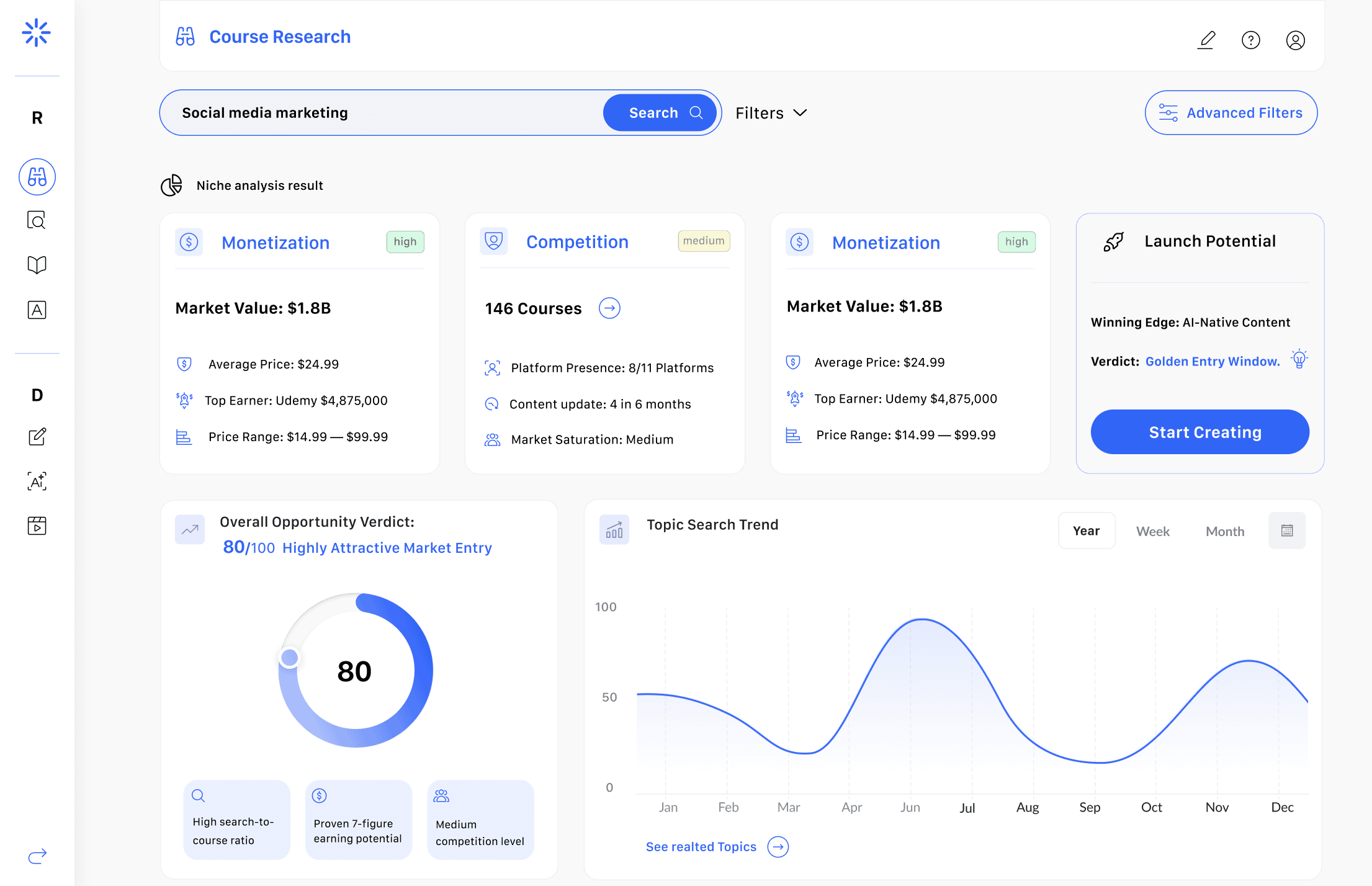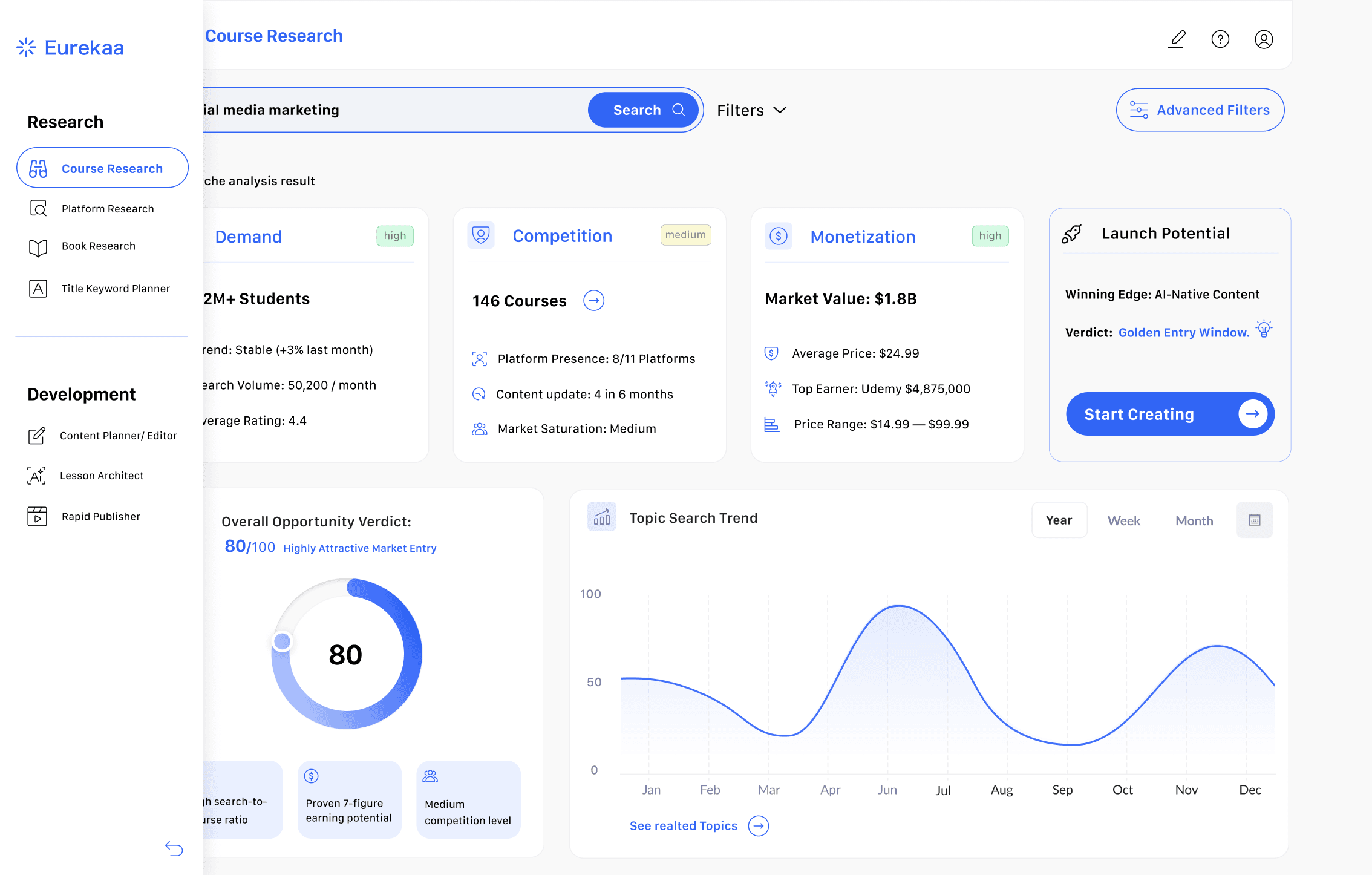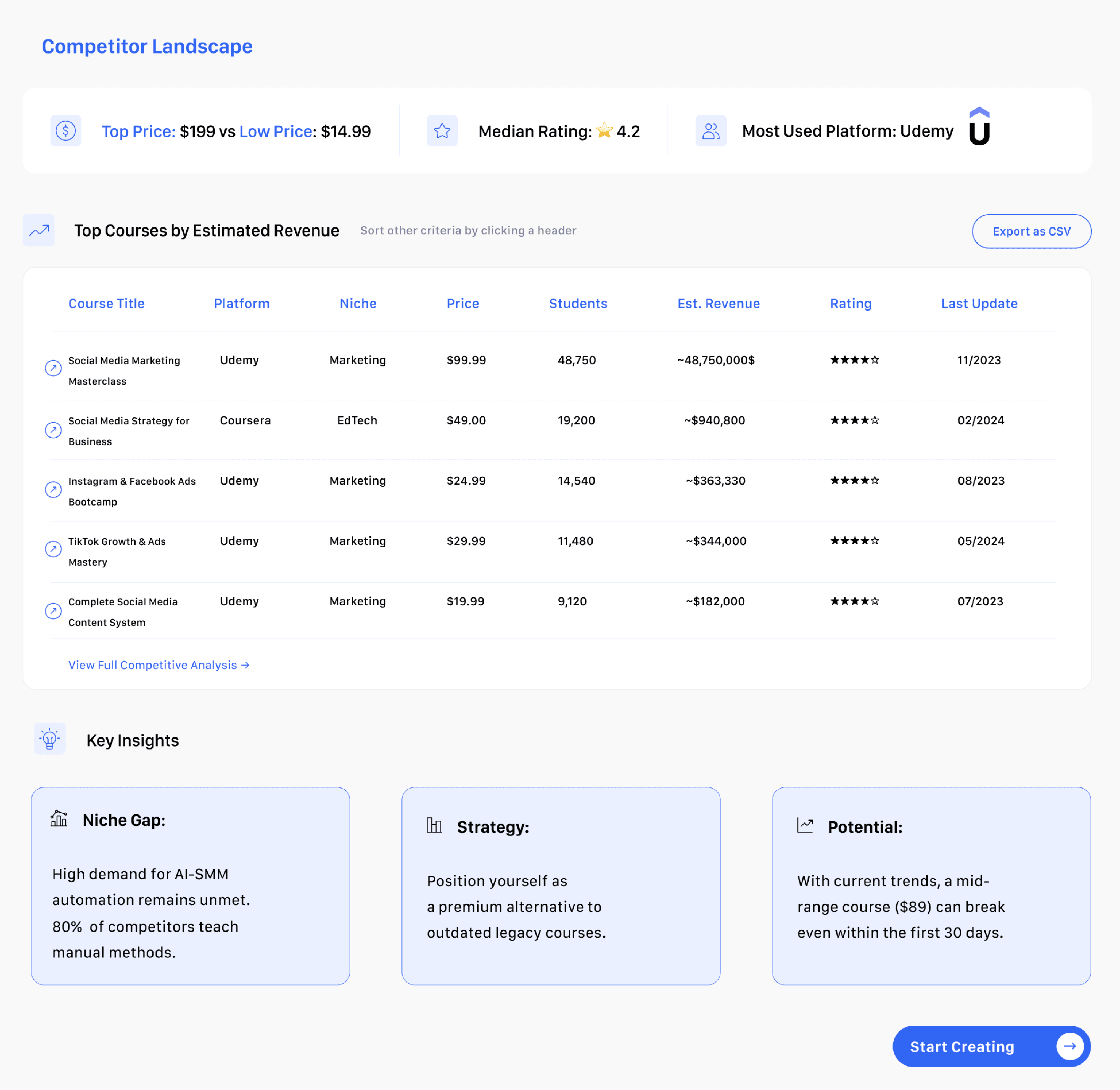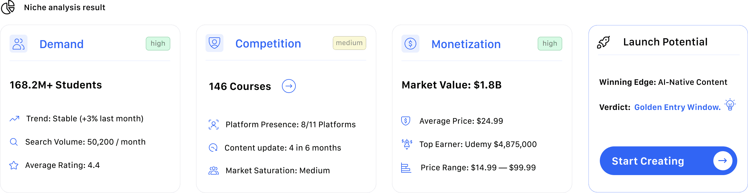 To de-risk course creation by providing data-backed validation of market demand and competition.
