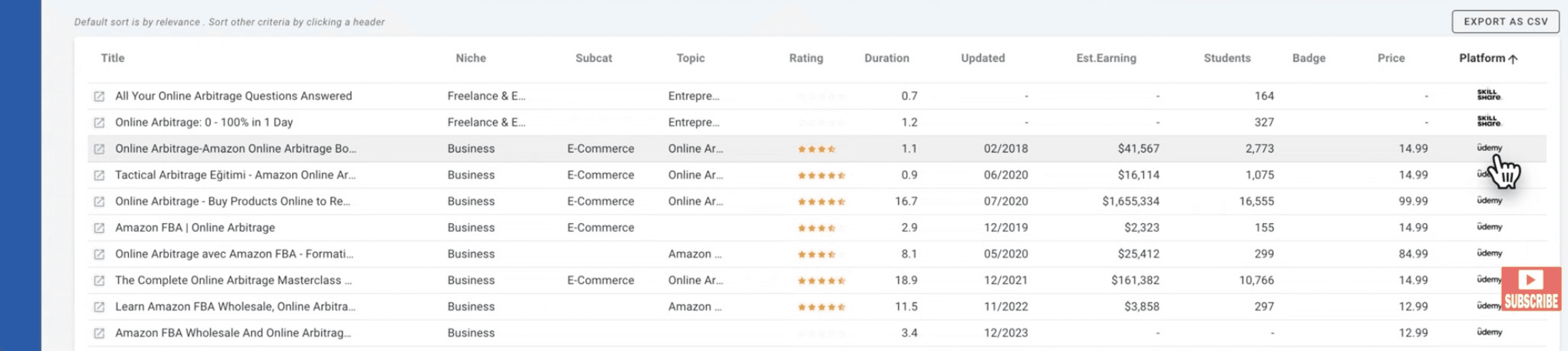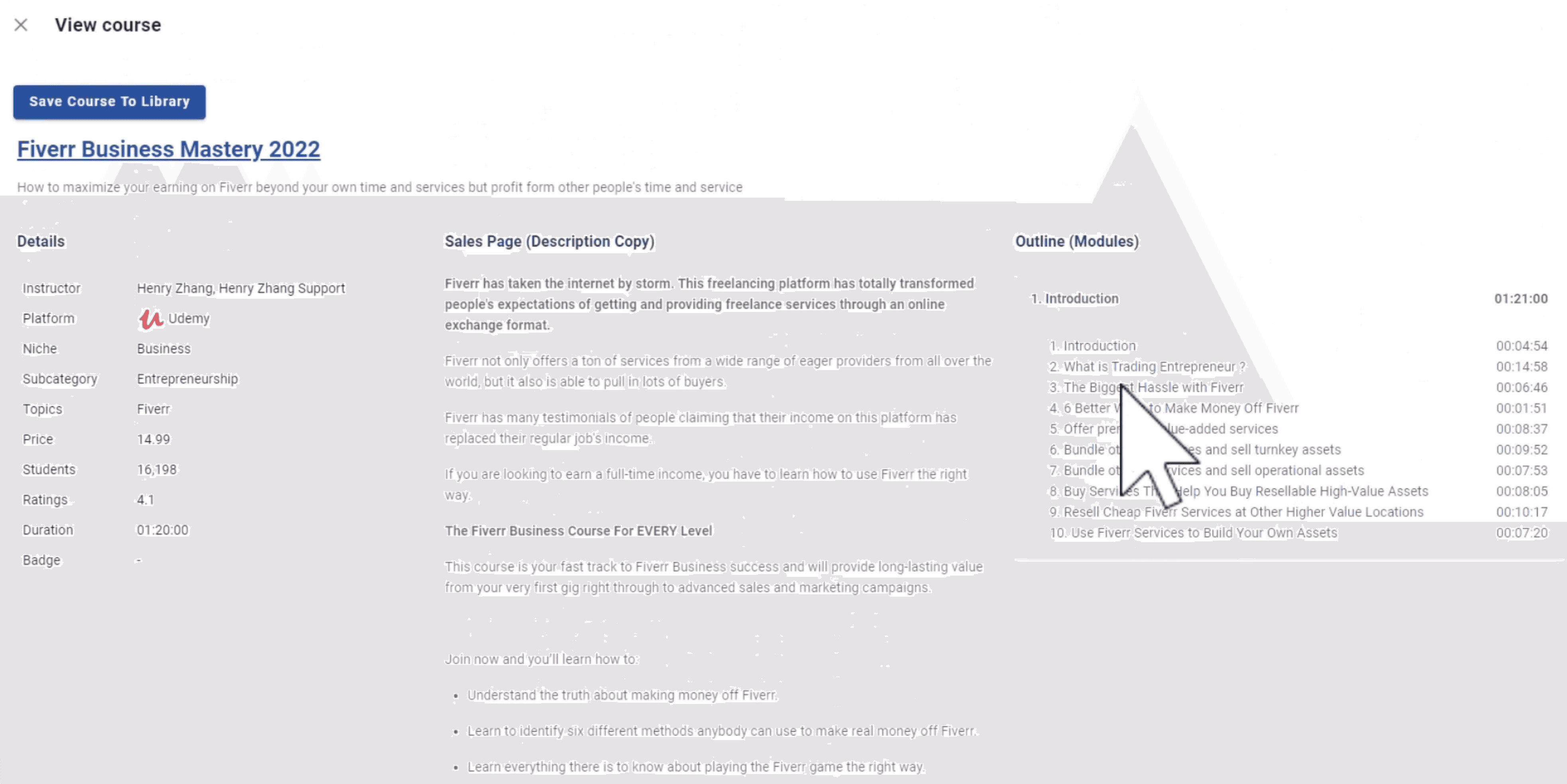 Included revenue, ratings, learners, and sales chart → Helps users evaluate the course faster.