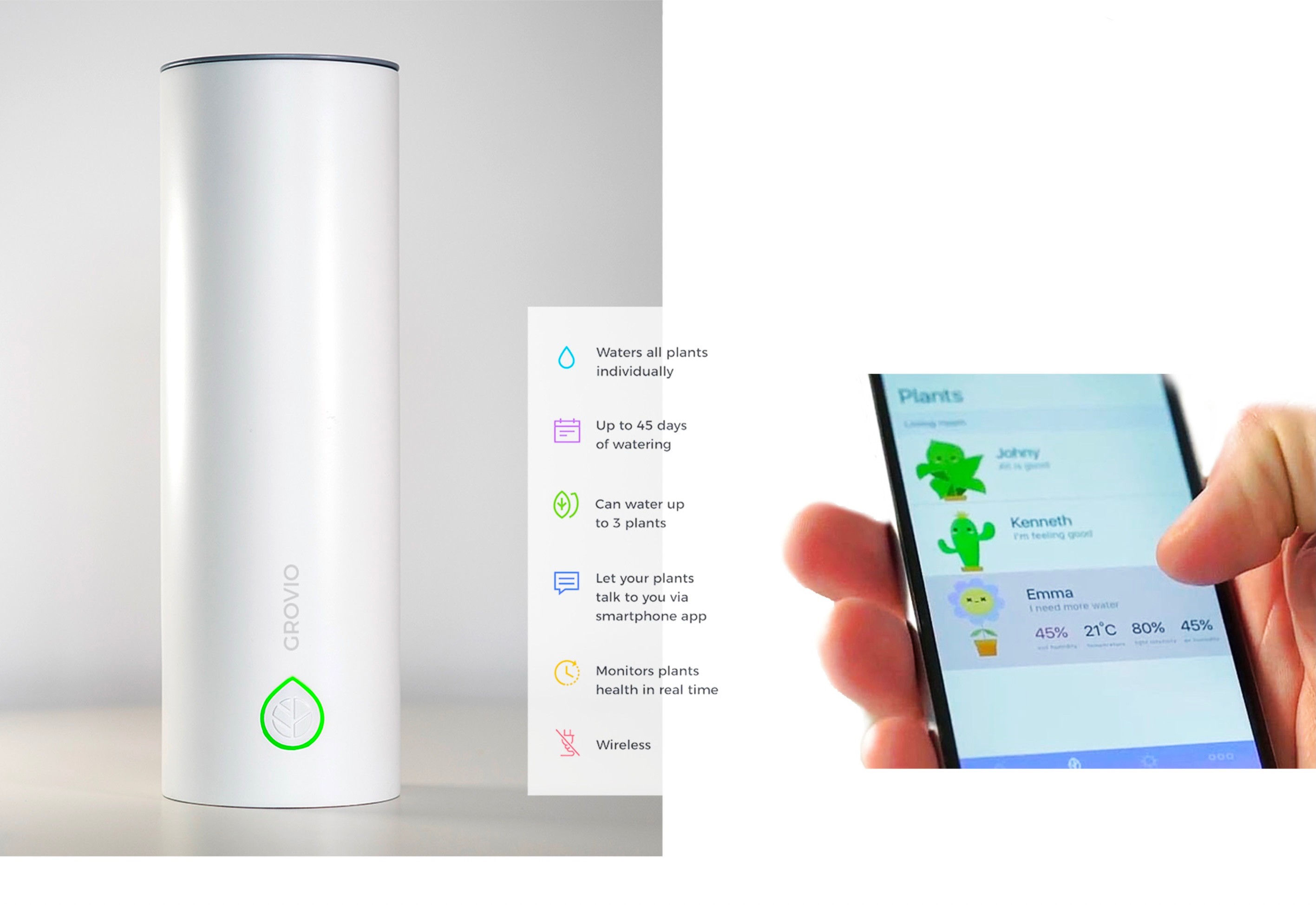 GROVIO’s Edge: Proactive Care. It combines high-end sensors with an automated watering reservoir.