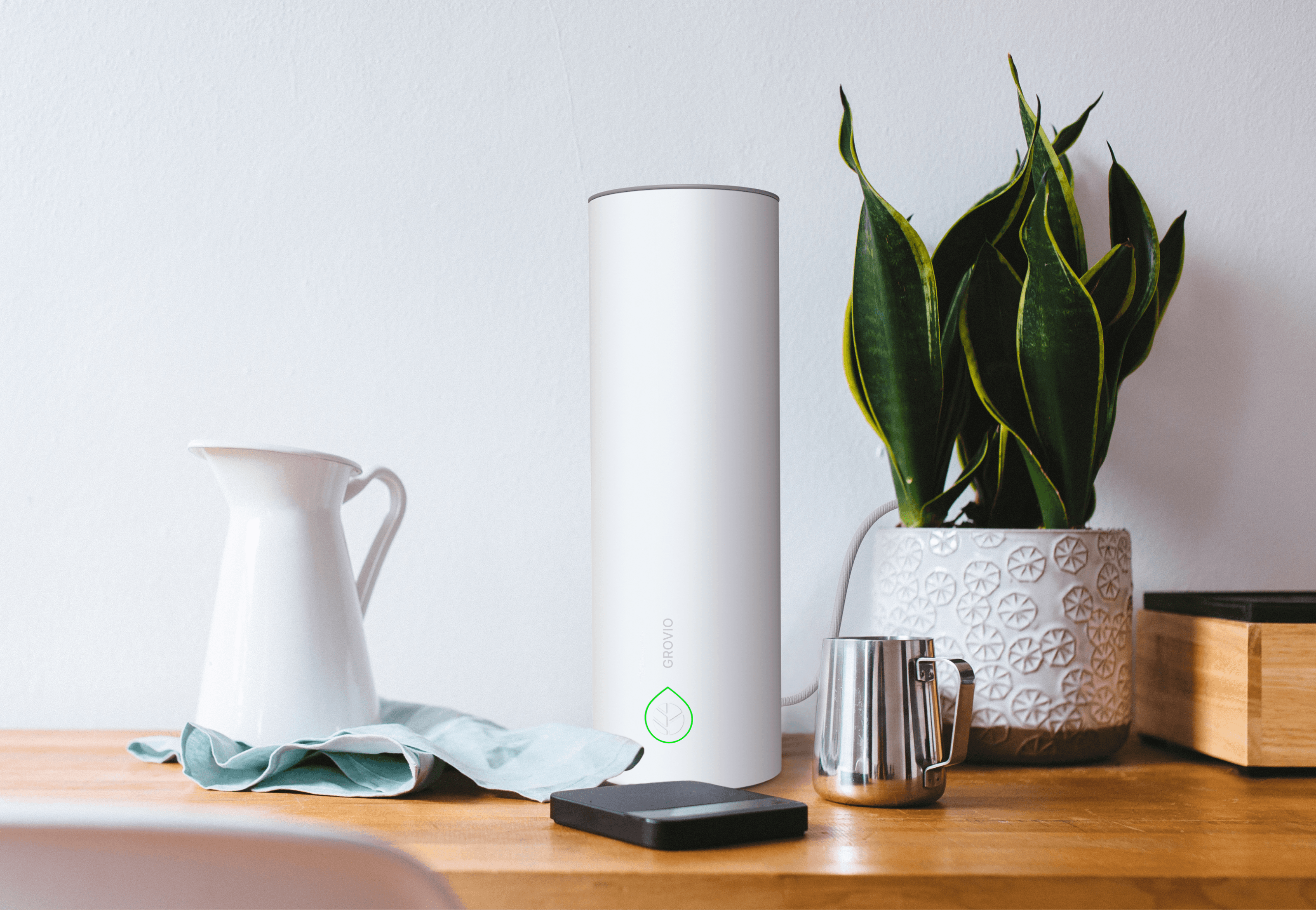 GROVIO’s Edge: Aesthetic Functionalism. It’s designed as an interior object — a sleek vase that hides the complexity while keeping your home beautiful.
