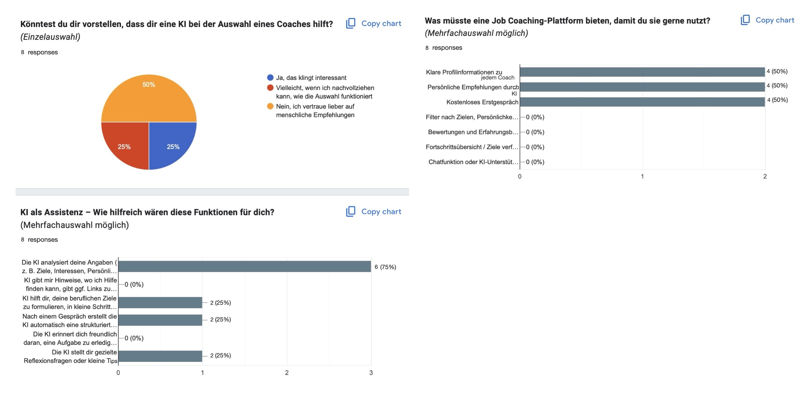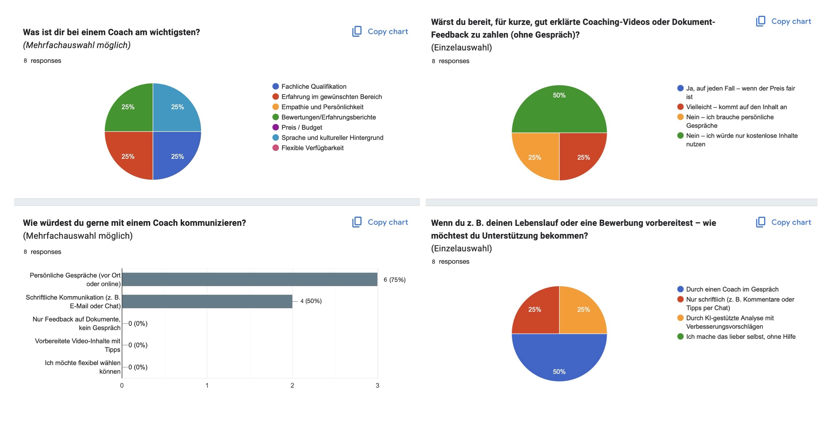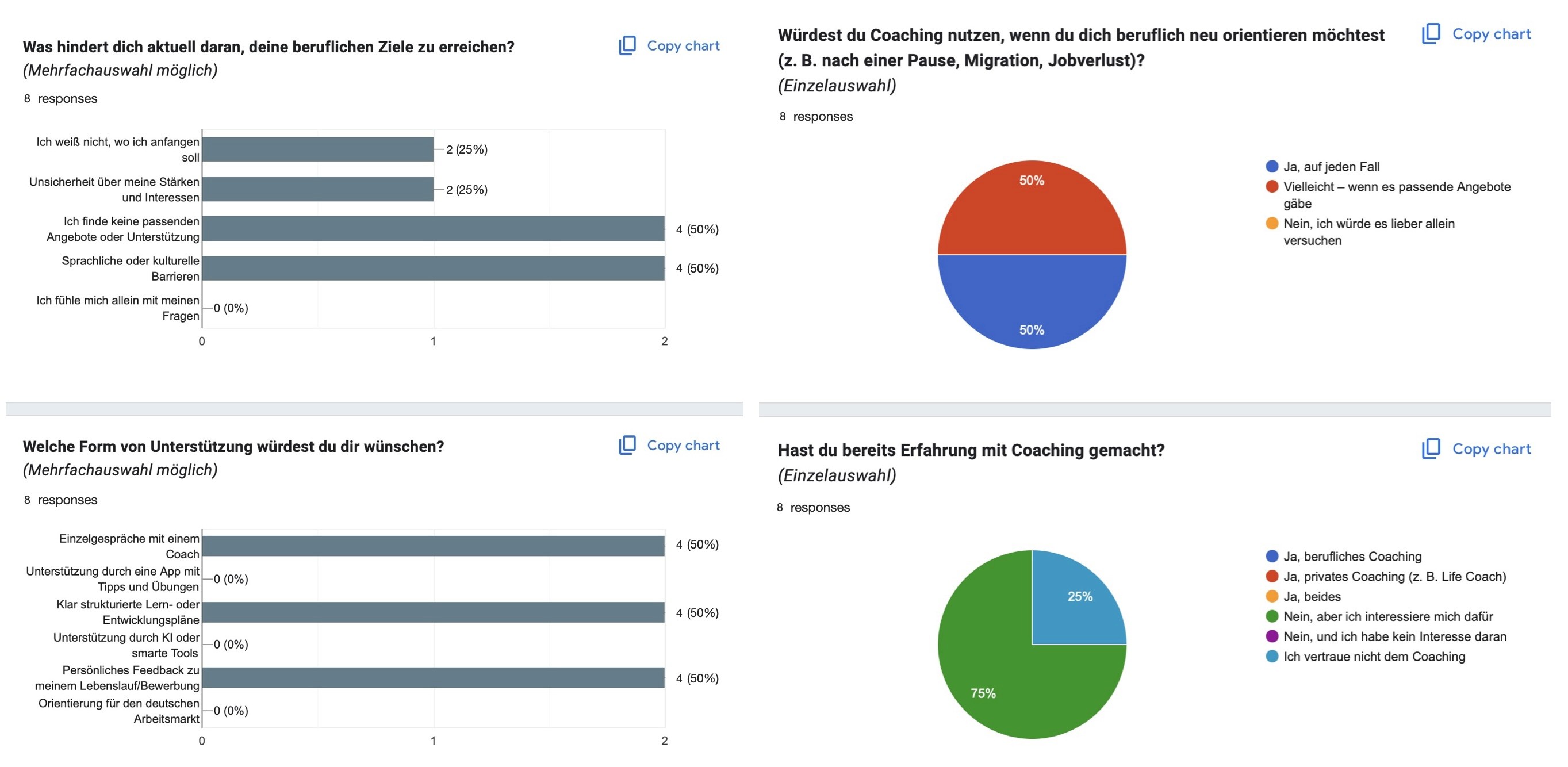 I interviewed 5 potential users with a migration background to understand their professional needs, expectations, and challenges. I explored their coaching experiences, attitudes toward AI support, preferred communication formats, and factors that would encourage regular use of the platform.