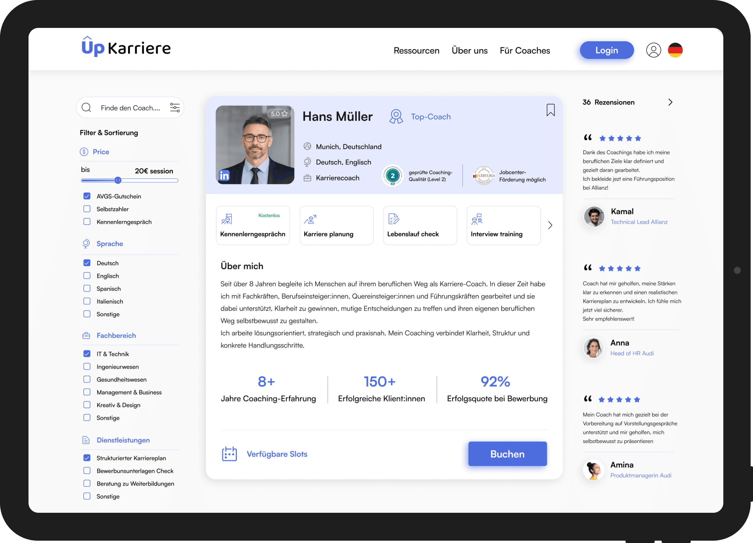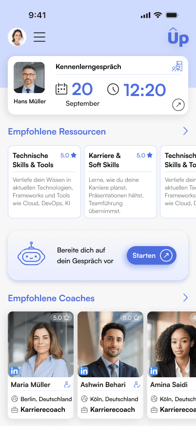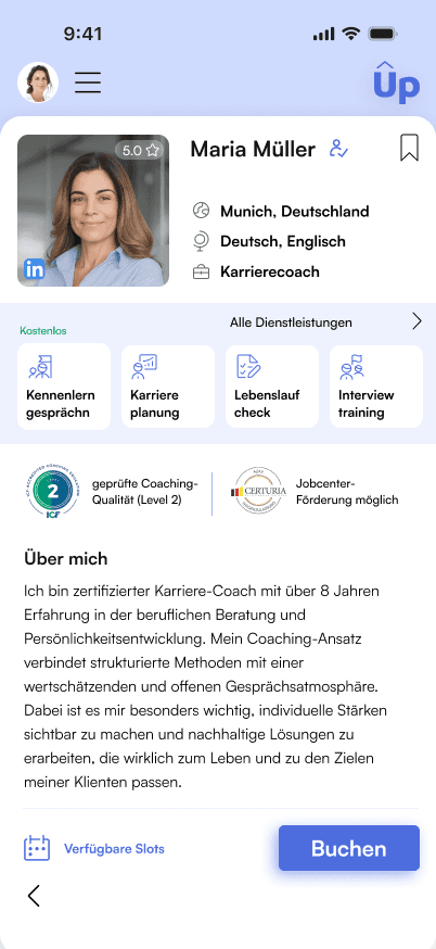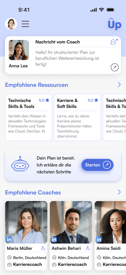 UpKarriere is an AI-driven platform that connects migrants in Germany with career coaches, helping them find the right match and advance their professional development.