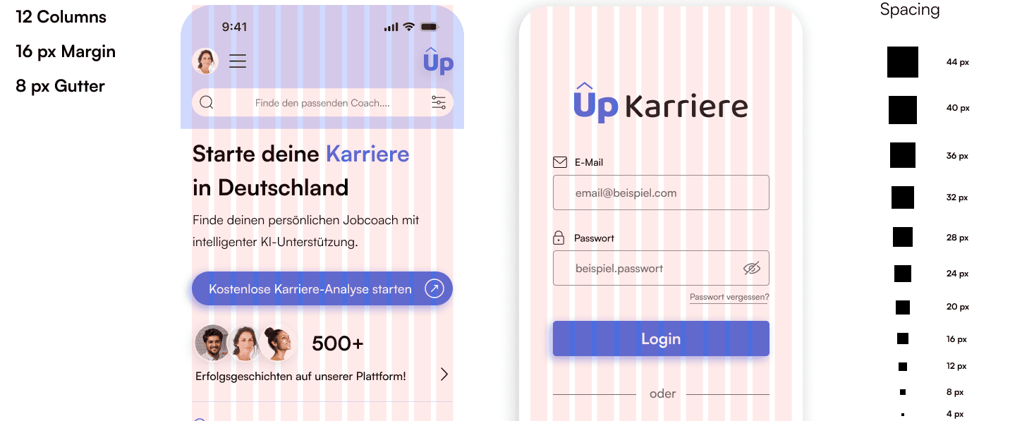 Up Karriere brand identity: Platform is a trusted companion for migrants in Germany. The tone is empathetic, professional, and motivating.