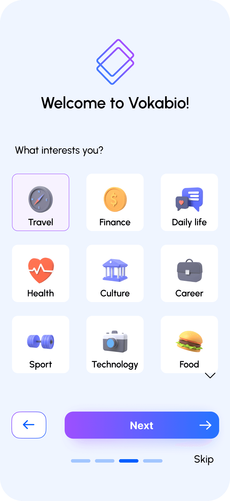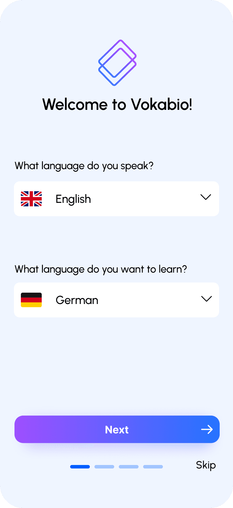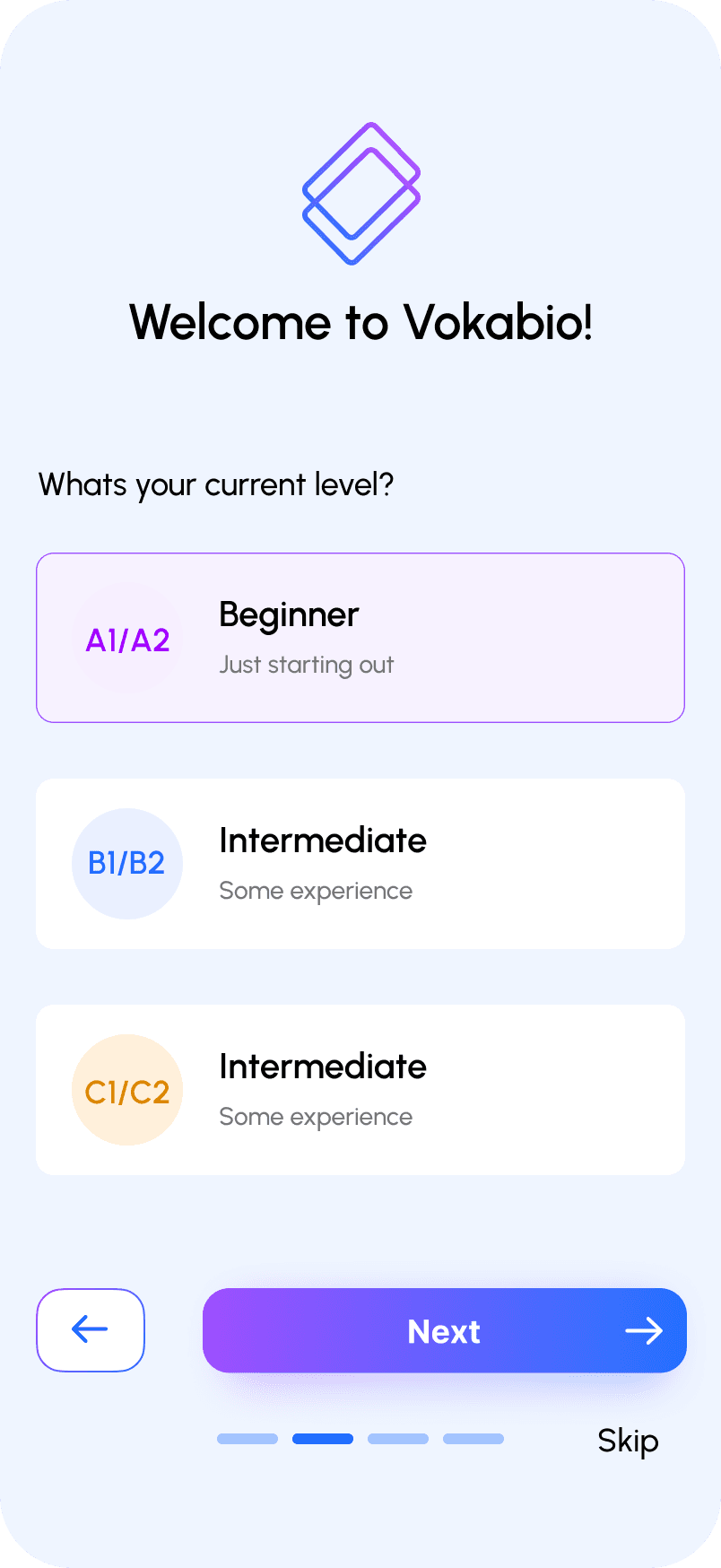 Short and clear onboarding helps users start learning quickly without feeling overwhelmed.